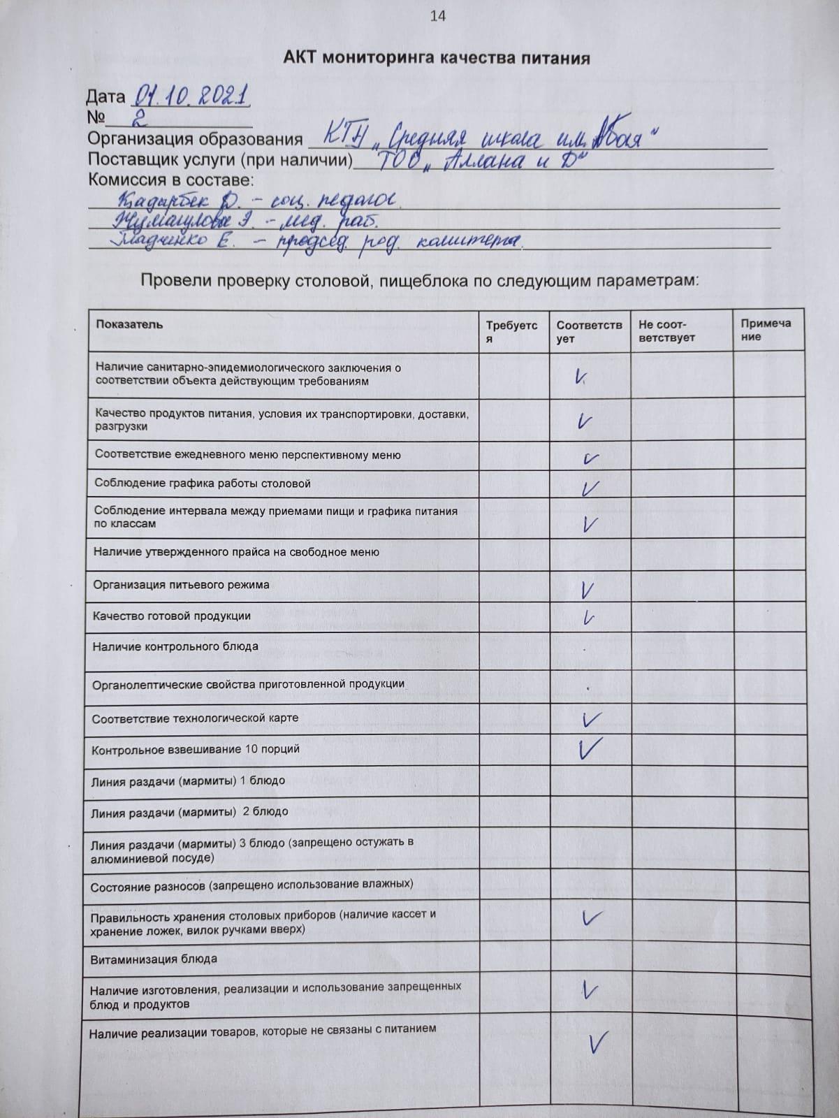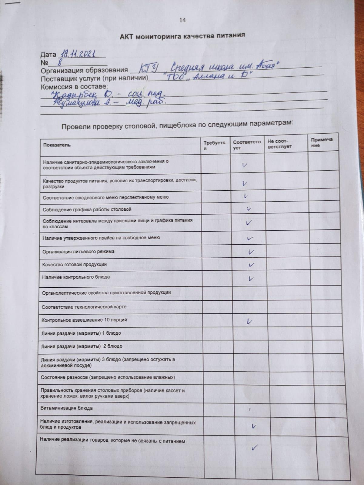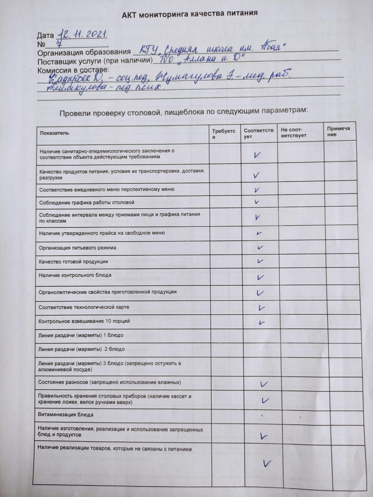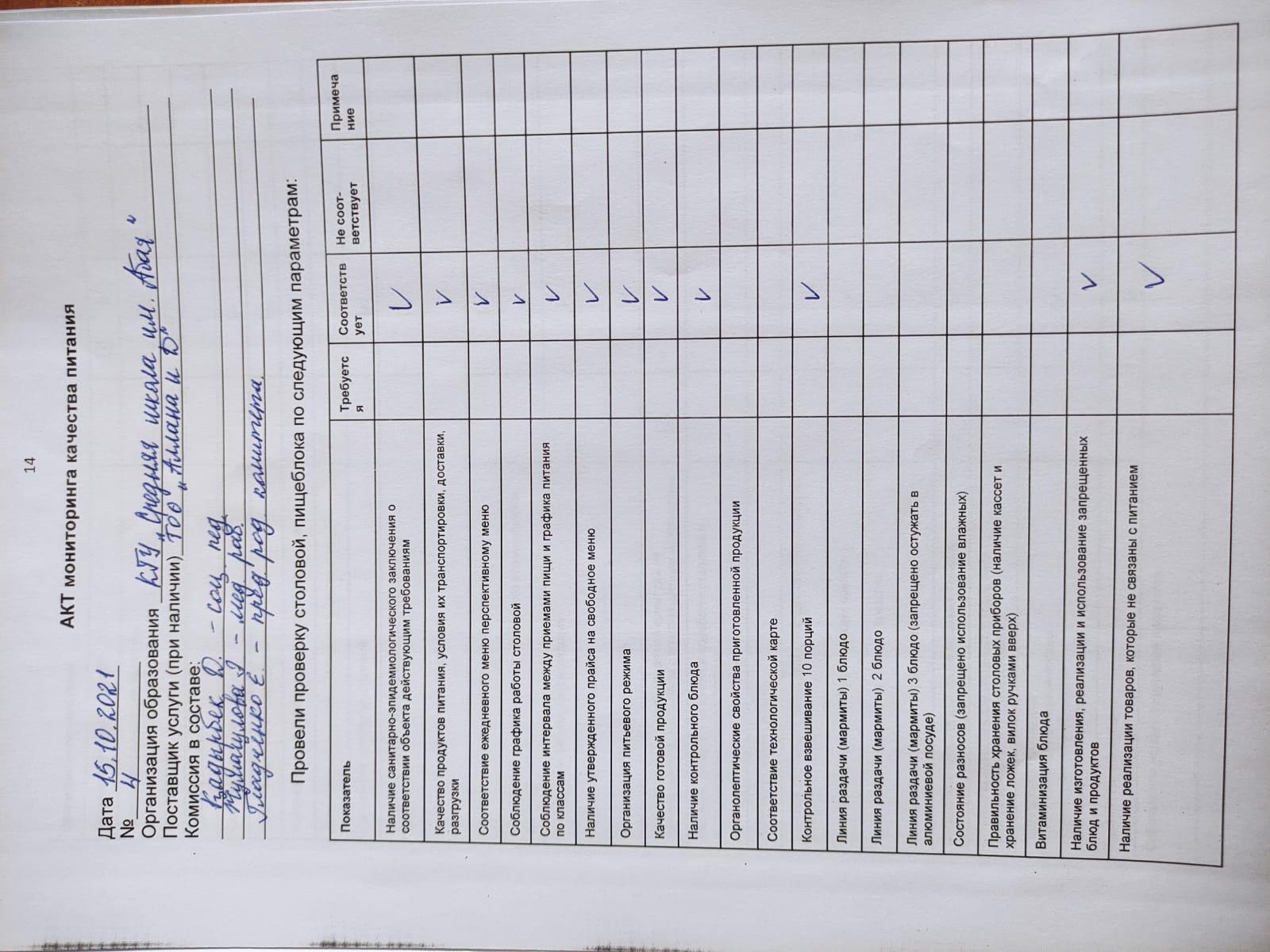 Абай атындағы орта мектебі » Горячее питание » Акты бракеражной комиссии(мониторинг качества питания)